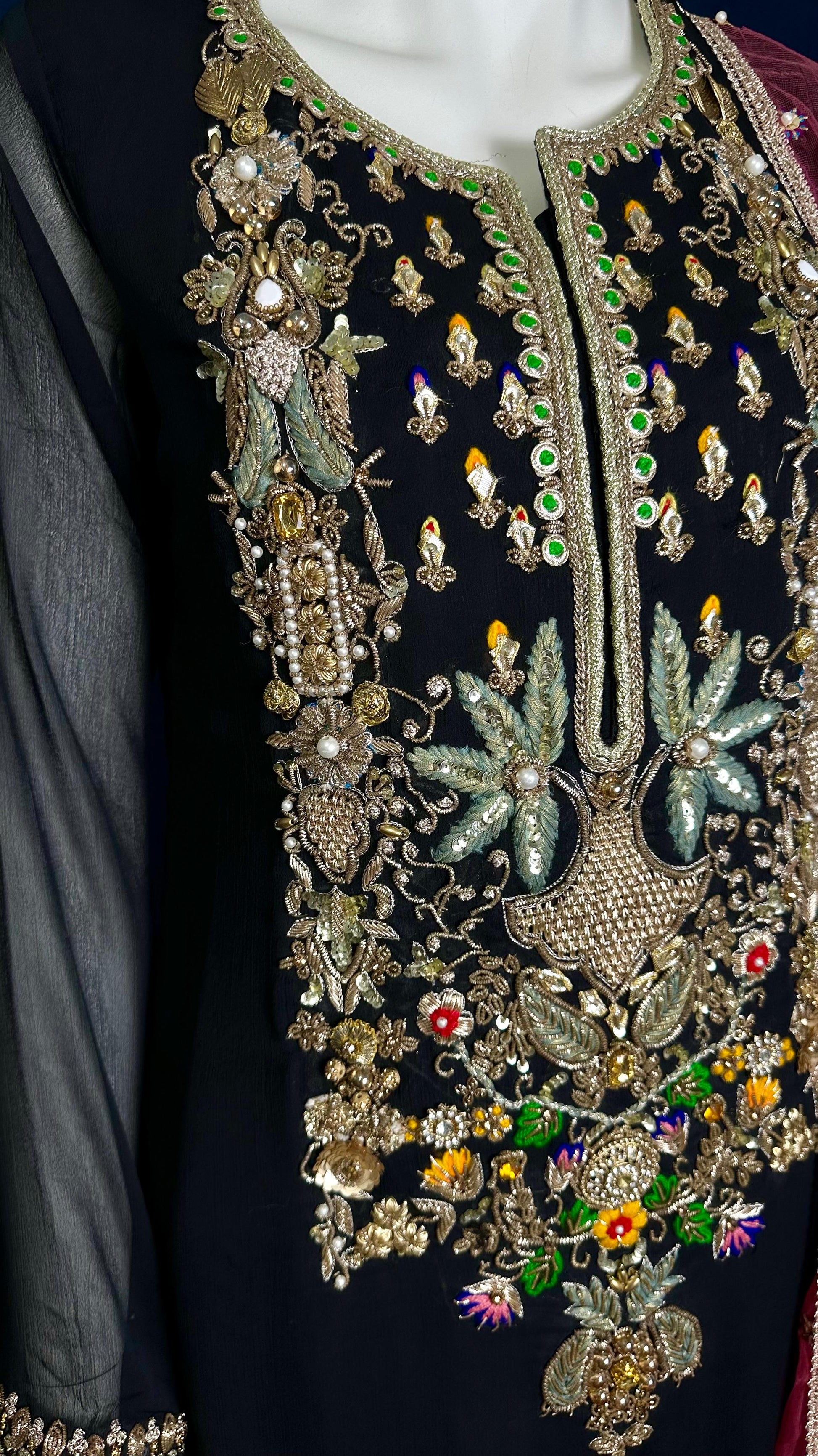 Z-292 Garden Noir 🌺 | Khuda Baksh Embellished 3-Piece Set