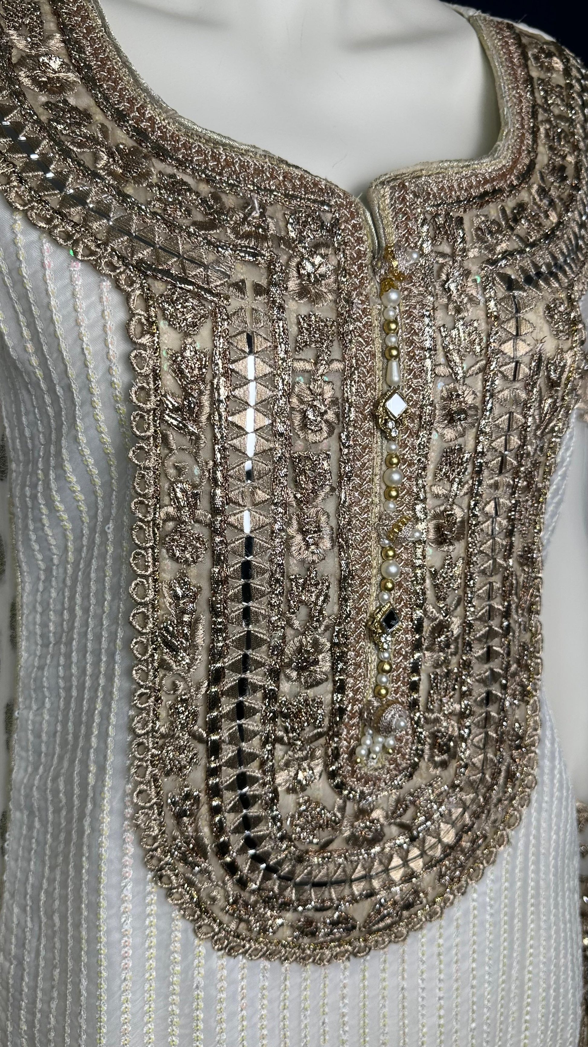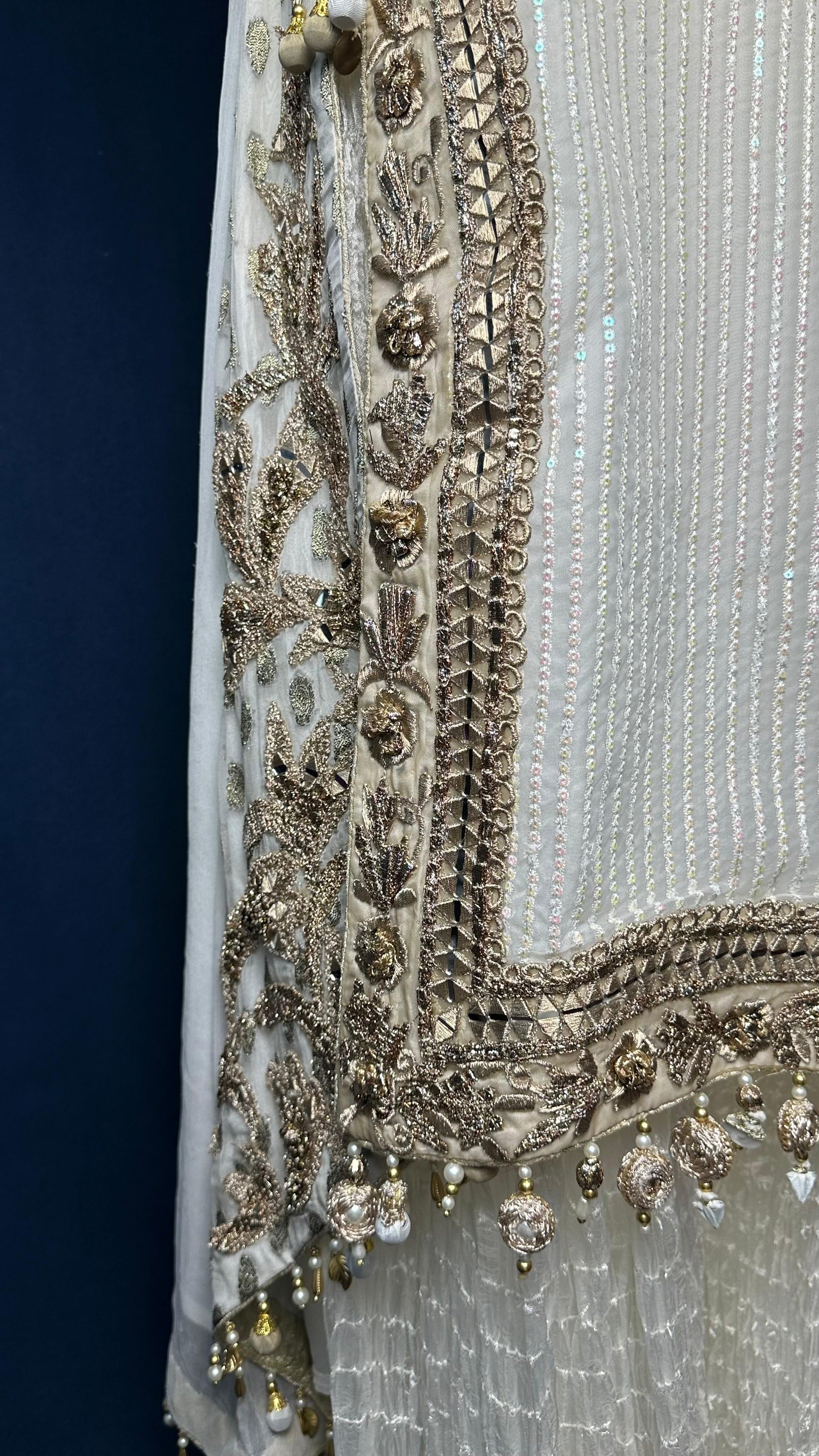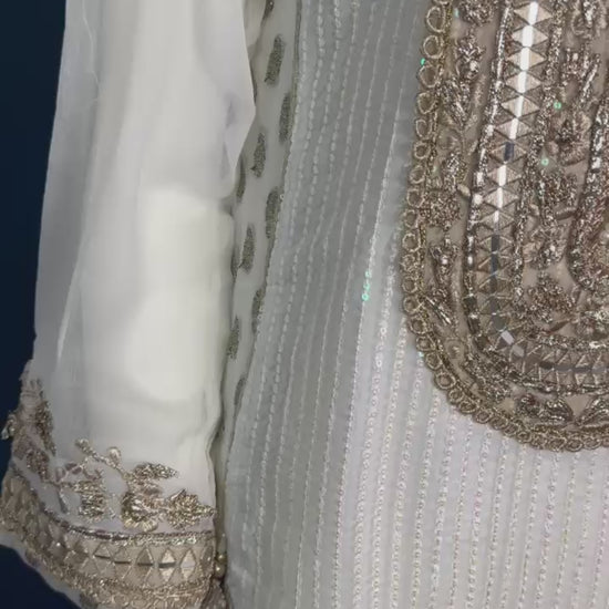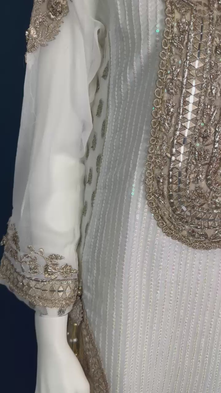 Step into elegance with M-109 by KB a graceful 3-piece ivory set with luxurious detailing, soft textures, and a flowing sheer dupatta. Ideal for weddings, receptions, and formal events