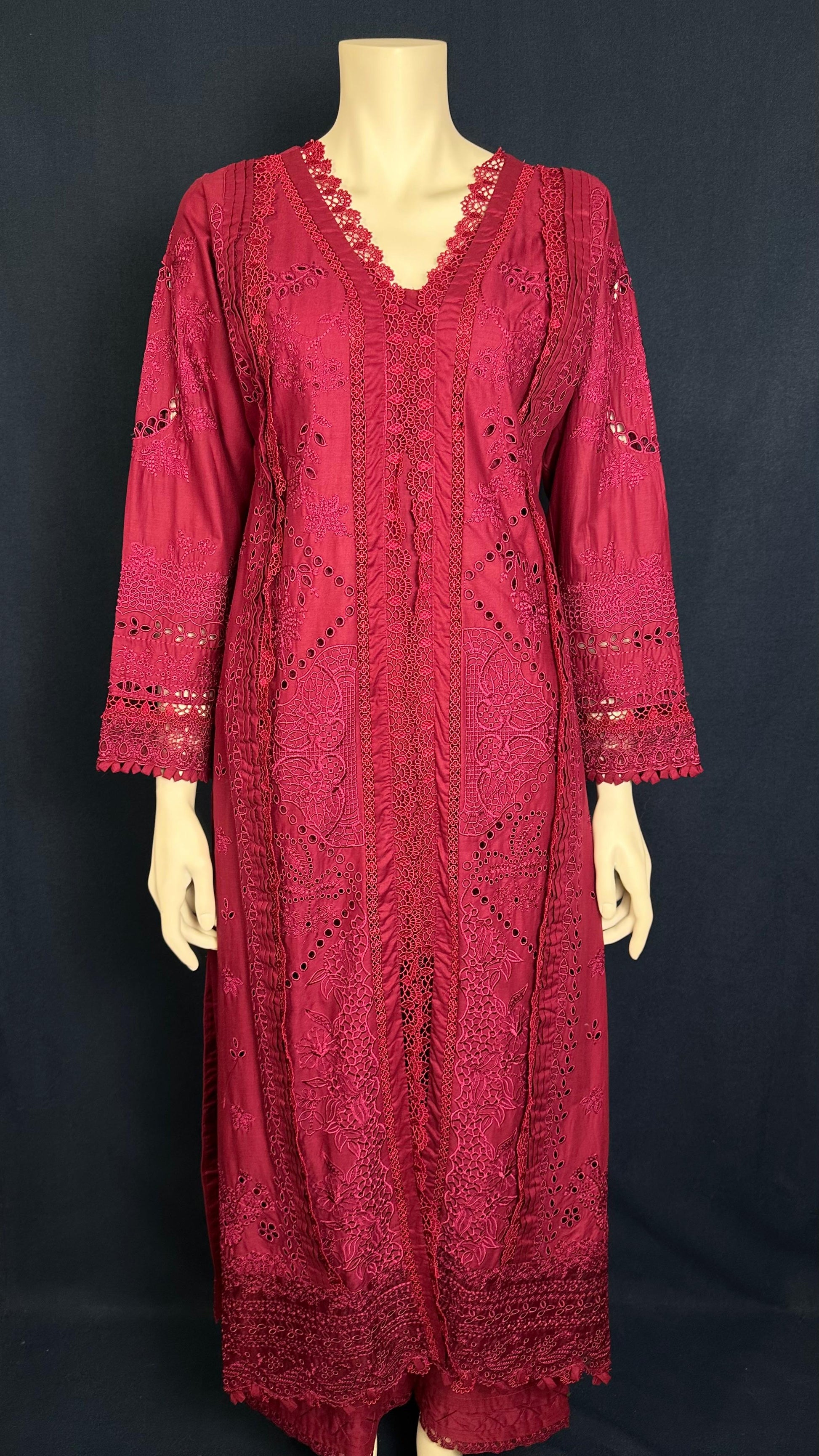A stunning deep red 3-piece set that radiates elegance and confidence. Accented with bold floral details and a graceful design, it’s the perfect look for festive moments or formal gatherings.