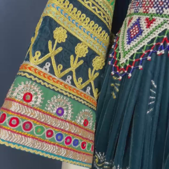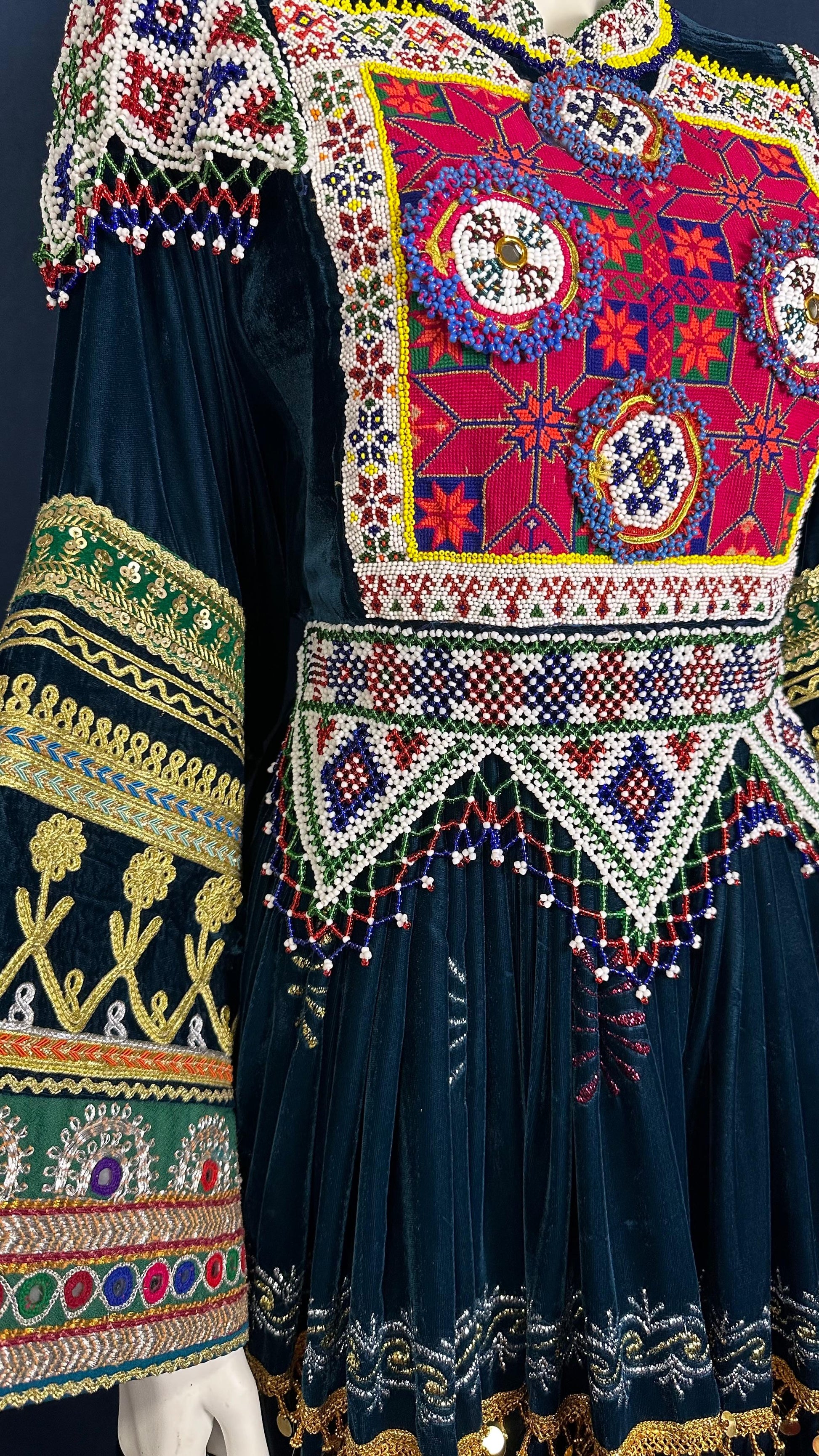 Soraya | Traditional Afghan Dress in Deep Green & Red