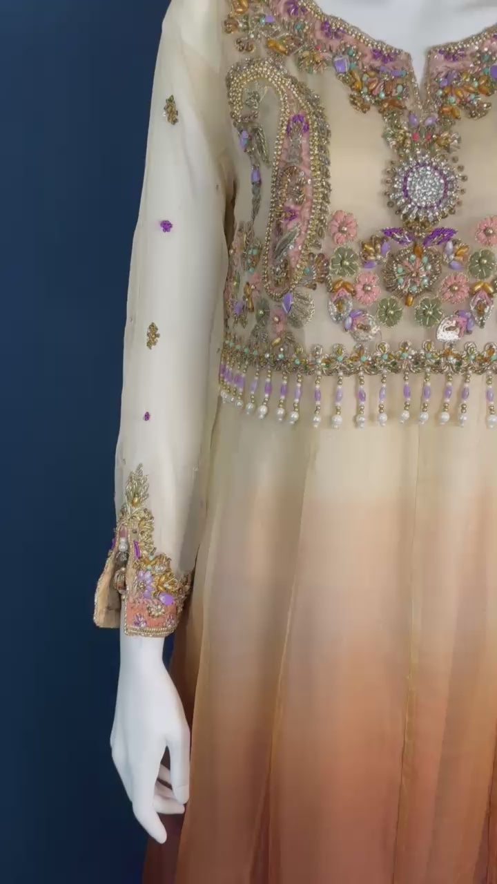 A soft transition from cream to rich brown – Z-264 Earth Glow by Khuda Baksh is a graceful 3-piece design with delicate gold details and a light blue dupatta. Ideal for elegant occasions.