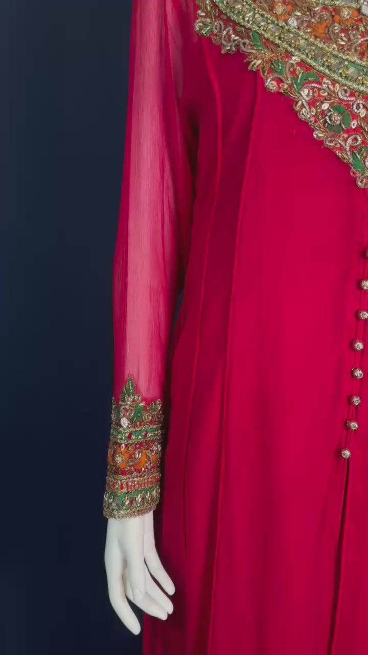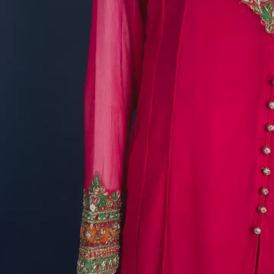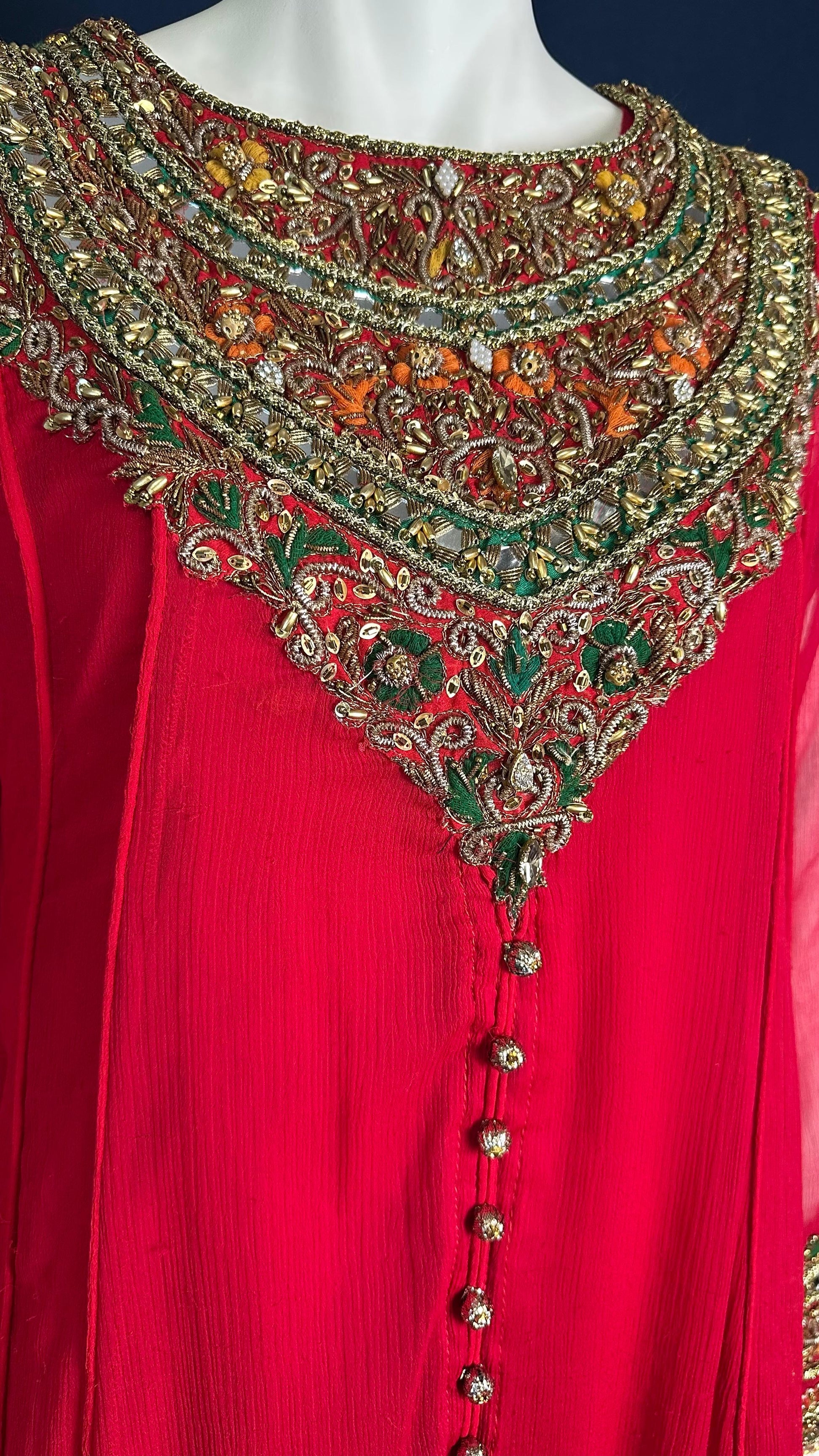 Make a vibrant statement with Z-304 Red by Khuda Baksh – featuring rich red tones, detailed gold embroidery, and a green dupatta. A perfect choice for weddings, parties, and festive gatherings.